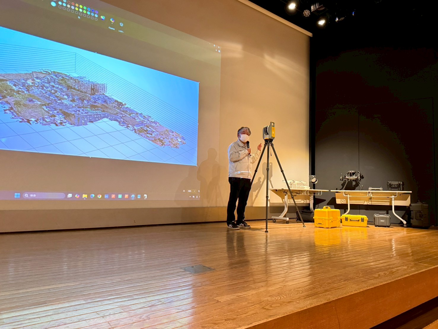 11月20日(木)中央工学校で学生90名を対象に三次元測量についての特別授業を行いました。授業では地上レーザー・写真ドローン・レーザードローン測量の概要と実際の点群データについてや測量機材についての説明も行いました。最後に学生の進路先として測量設計業界のPRもさせていただきました。