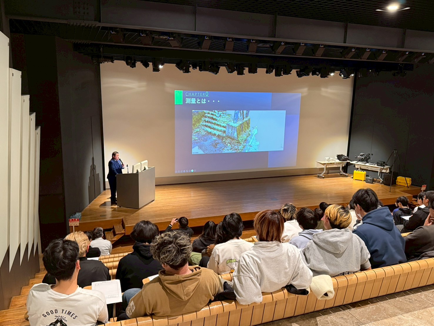 11月20日(木)中央工学校で学生90名を対象に三次元測量についての特別授業を行いました。授業では地上レーザー・写真ドローン・レーザードローン測量の概要と実際の点群データについてや測量機材についての説明も行いました。最後に学生の進路先として測量設計業界のPRもさせていただきました。